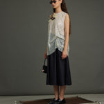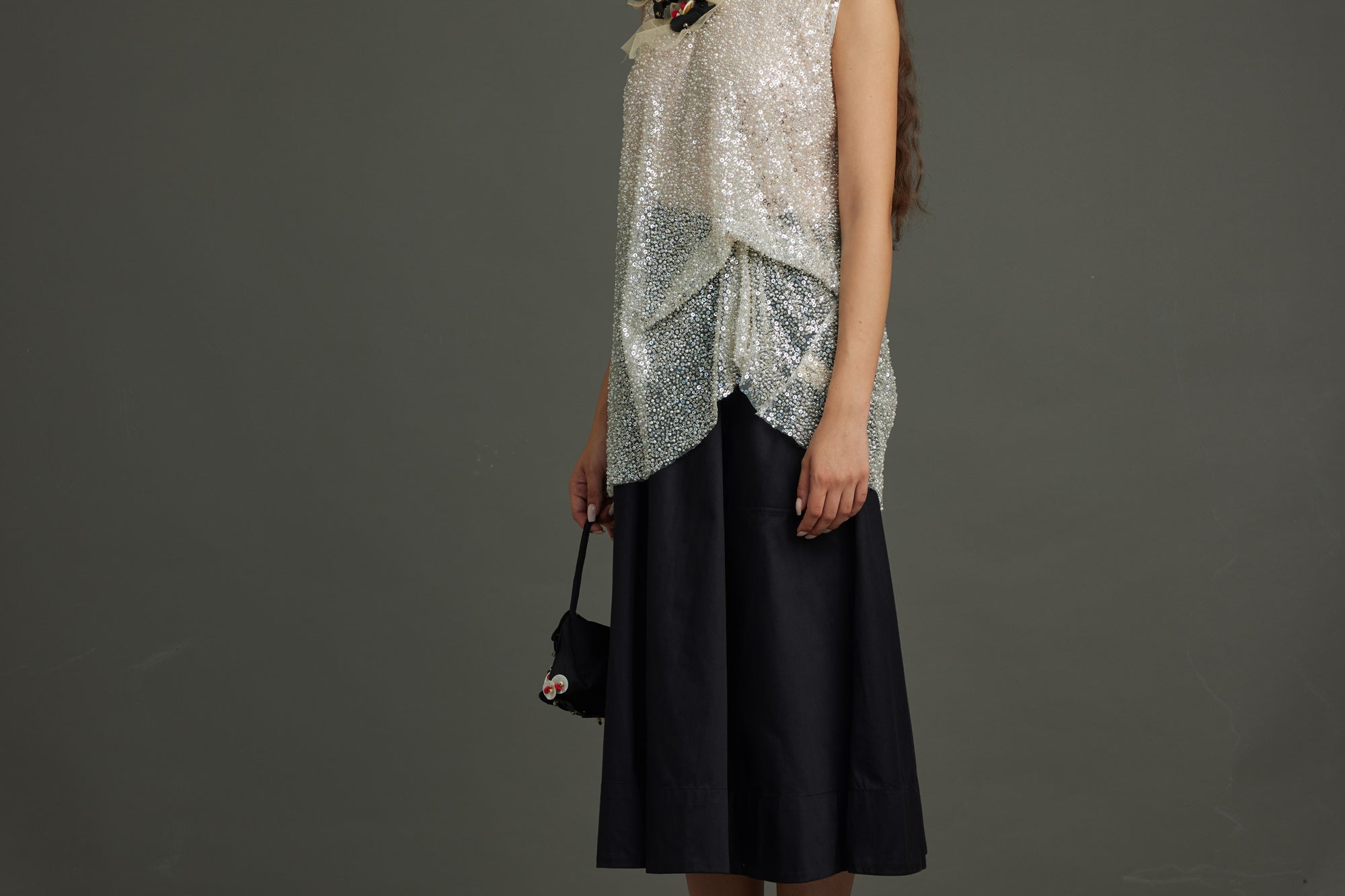 A flattering high waist skirt with subtle gathering that releases into a voluminous A-line silhouette. Horizontal seam detailing near the mid-thigh adds an architectural element and structure to the skirt's full shape, while the deep hemline enhances the finish. Complete with practical side pockets, a foundation piece your wardrobe requires.