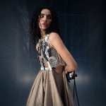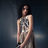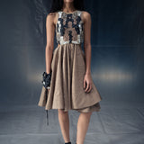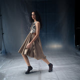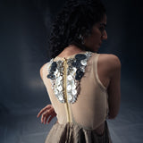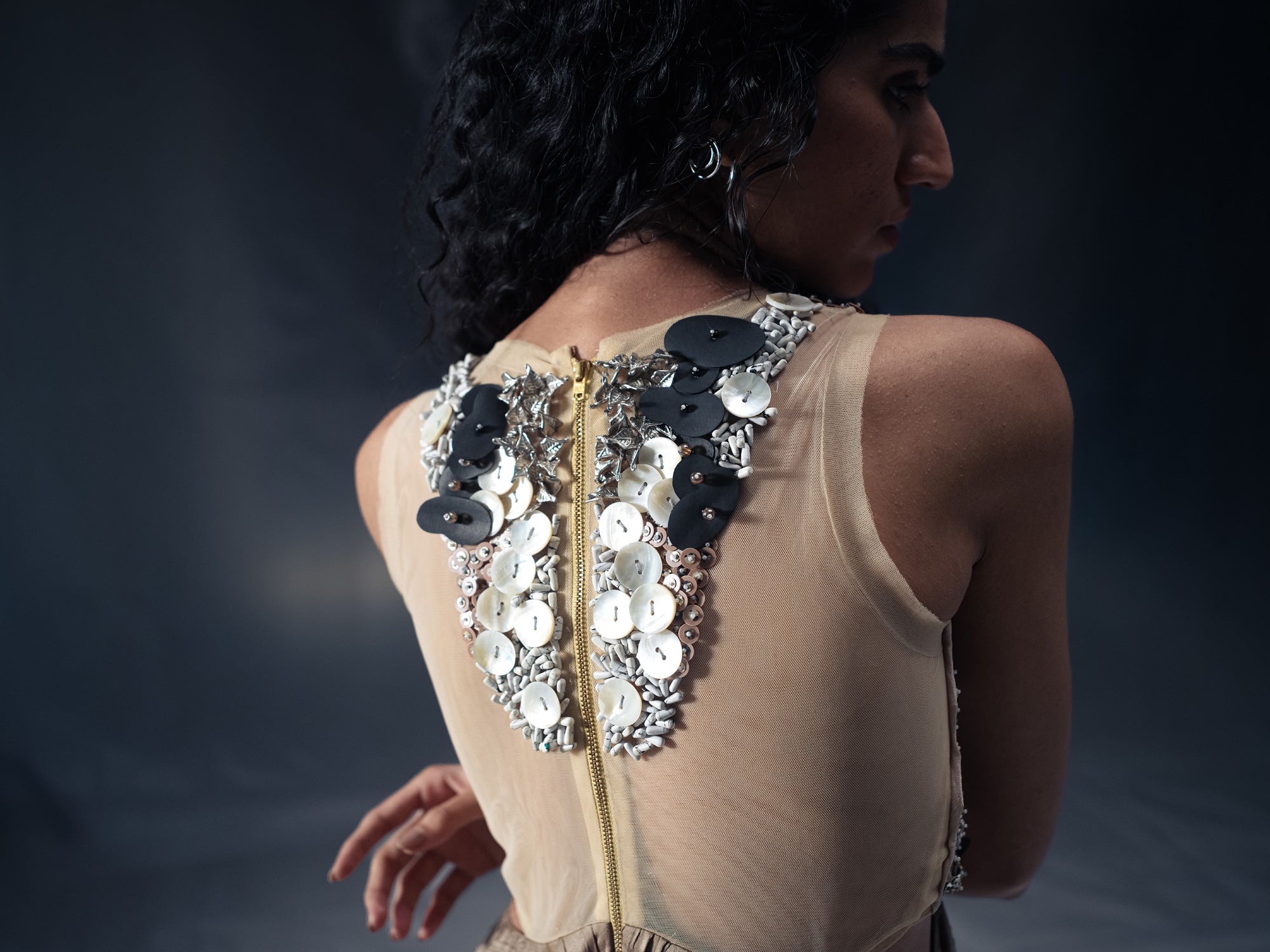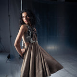 Button and rubber in units in abundance run along the fire lines set in by in play, the stippling form from the satin crush in a Sculpted peplum dress with a racer back and circular scoop cut-outs at the side hem create the carbon dust fold dress.