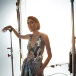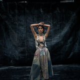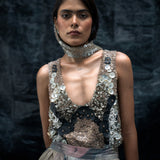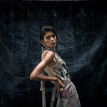 Classic summer tank look with signature GRAINE rubber detailing providing interplay of textures. The timeless button detailing clustered to mold in stone skin net structure.
